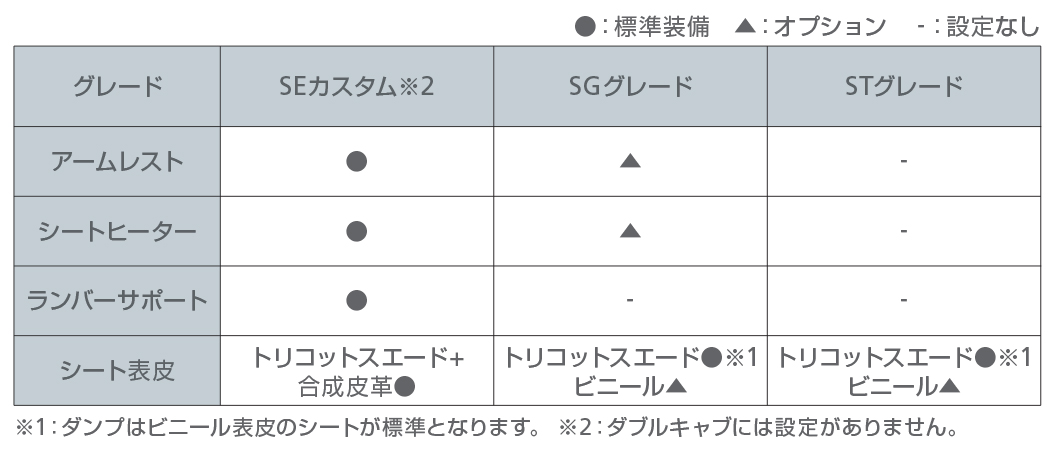 ※ 装備は車型により設定が異なります。詳しくは主要装備一覧表をご参照ください。